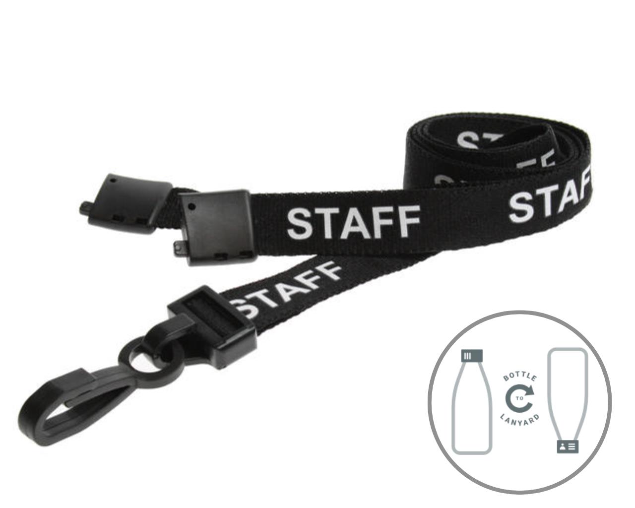 Ensure staff feel valued by issuing our eco-friendly Black Staff Lanyards. Make identification simple and stress-free, while also showing your employees that you take their security seriously. Packed in corn starch and made from recycled plastic bottles (RPET) with safety breakaway, these lanyards offer comfort and environmental consciousness and convenience to the user.